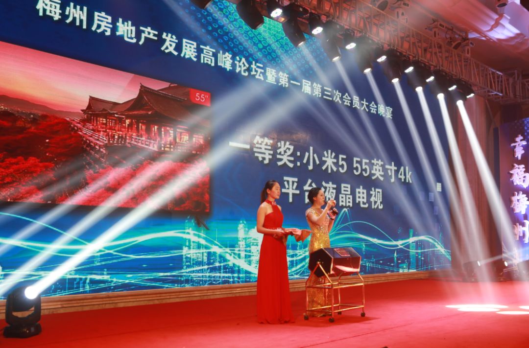 梅州房协2017年度第一届第三次会员大会答谢晚宴在精彩的歌舞声中隆重举行,现场歌舞升平,精彩纷呈,大型抽奖环节激动人心,来宾们个个欢喜雀跃,节目最后,伴随着舞蹈【花开盛世】,宴会画上了圆满的句号,寓意2018梅州房地产锦上添花,2018梅州房地产再创辉煌。